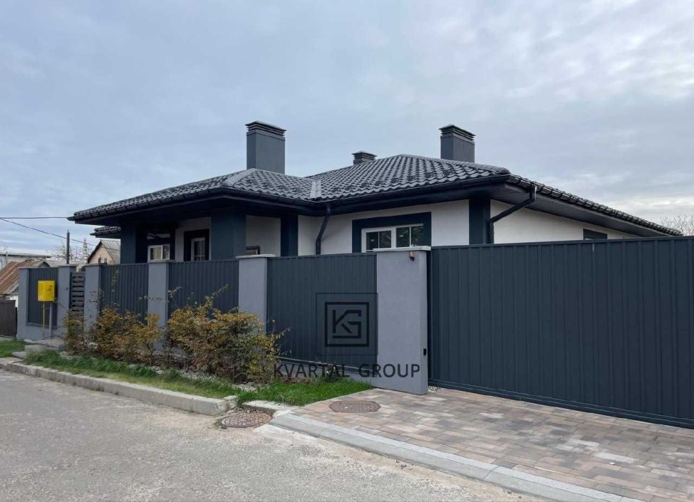 Пропонується до продажу сучасний будинок площею 150 м² у приватному секторі Києва зі зручним виїздом на Кільцеву дорогу. Будинок розташований на тихій тупиковій вулиці, що гарантує відсутність проїжджаючого транспорту та повну приватність. Ділянка 10 соток правильної форми з професійним ландшафтним дизайном, автополивом та вимощеними доріжками. На території зведена унікальна всесезонна альтанка з панорамним склінням, власною теплою підлогою, водою та каналізацією — ідеальне місце для барбекю взимку та відпочинку влітку. Також облаштовано парковку на декілька авто з електроворотами та окреме господарське приміщення.