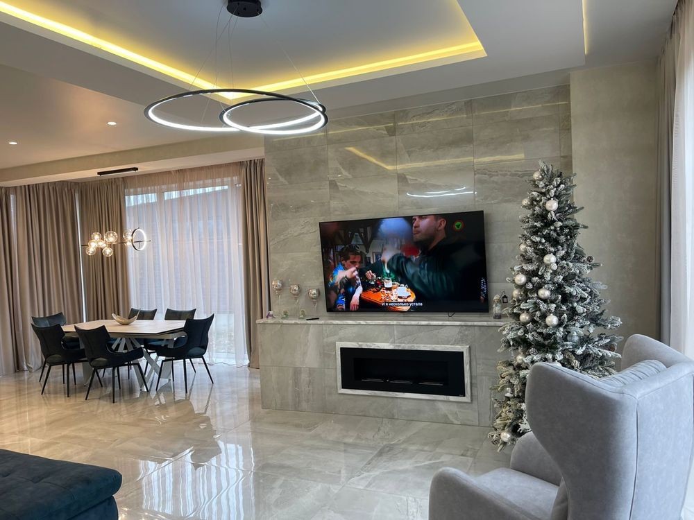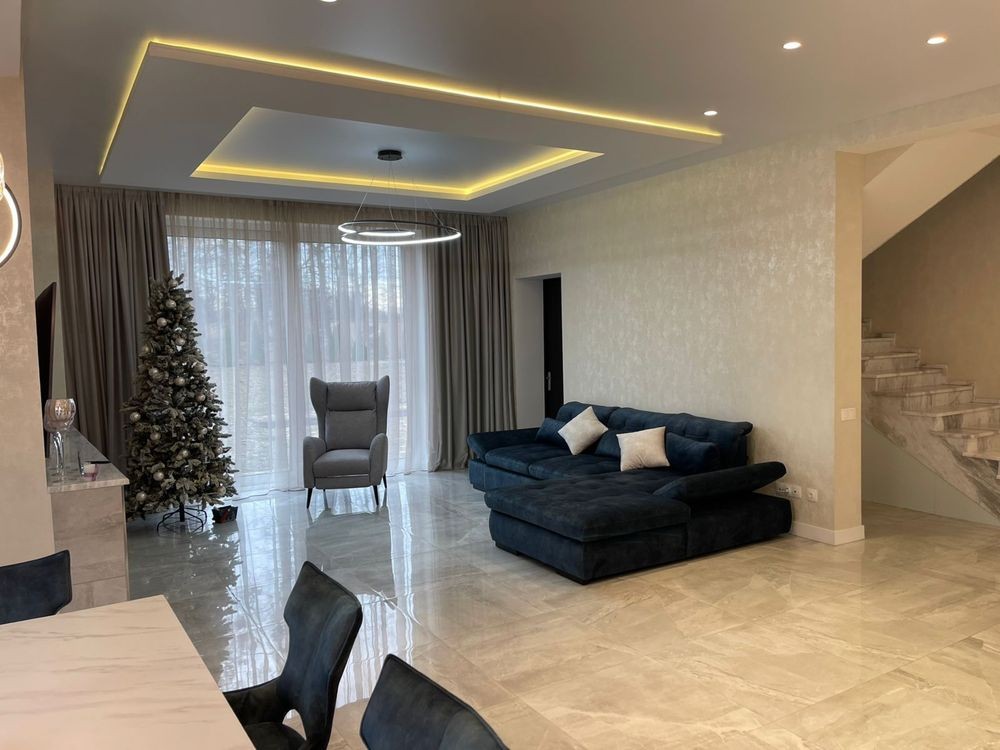 Площа будинку: 235,0 кв.м, 3 спальні, кухня-студія та велика гардеробна. Ділянка 0,13 га; КМ "Козак Хутір", готовий будинок з ремонтом у мальовничому місці біля річки у Рославичах, за 20 хвилин їзди від Києва. Вихід з вітальні на терасу з видом на ліс. Два види опалення: перший поверх-тепла підлога. Другий поверх-індивідуальне газове опалення. Перший поверх -велика кухня, санвузол, простора вітальня з діючим каміном і виходом на красиву терасу з видом на ліс!Другий поверх - дві окремі кімнати, вбиральня, санвузол, гардеробна. Є свій винний льох у стилі лофт! Критий навіс 10х6,розрахований на 4 машини.