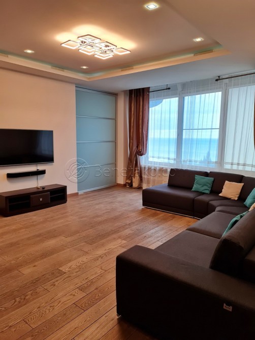 Код: 704. ДОЛГОСРОЧНАЯ АРЕНДА (без выселения на летний период). Просторная квартира с паркоместом в Ж/К «Белый Парус», ул. Литературная 1А, 10/20 эт. дома, общая площадь 131 кв. м. Евроремонт, кухня-студия, две спальни, кабинет, постирочная, балкон, панорамные окна с видом на море. Есть вся необходимая мебель и бытовая техника, в санузле ванна и душ. Элитный жилой комплекс, расположен в 300 метрах от моря, в доме есть фитнес-клуб и бассейн, охраняемая территория. Проживание с животными не допускается. Аренда от 6-ти месяцев и более. Стоимость может варьироваться в зависимости от срока аренды. Перед просмотром уточните наличие и важные для вас детали по VIBER, WHATSAPP или TELEGRAM, указав «КОД» из объявления. КОМИССИЯ ЗА УСЛУГИ РИЭЛТОРА - 50% от месячной аренды (разовая оплата при оформлении договора).