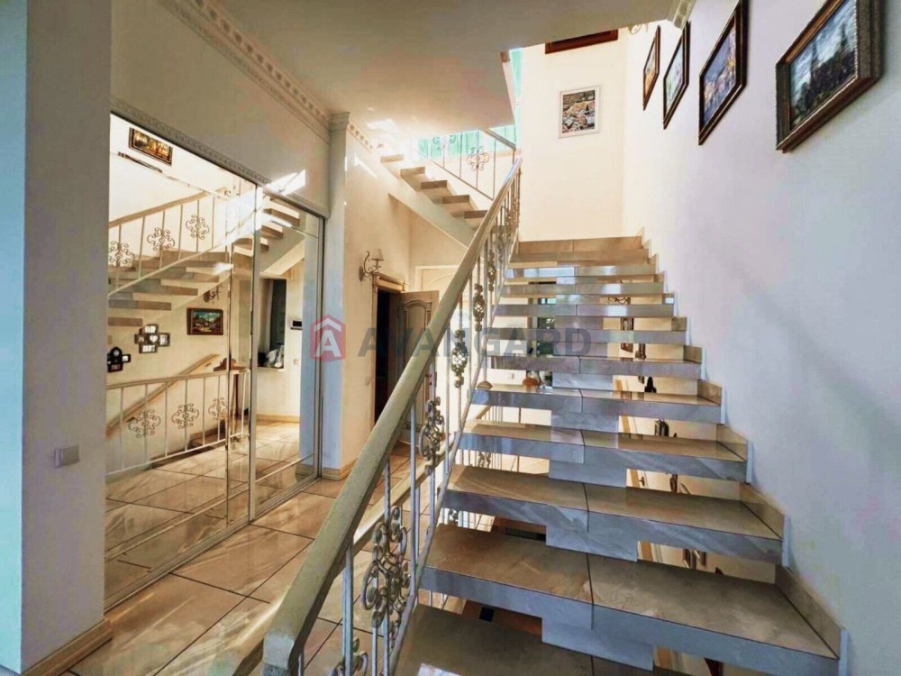 Будинок має три поверхи та мансарду-кабінет 20 м² (з опаленням).