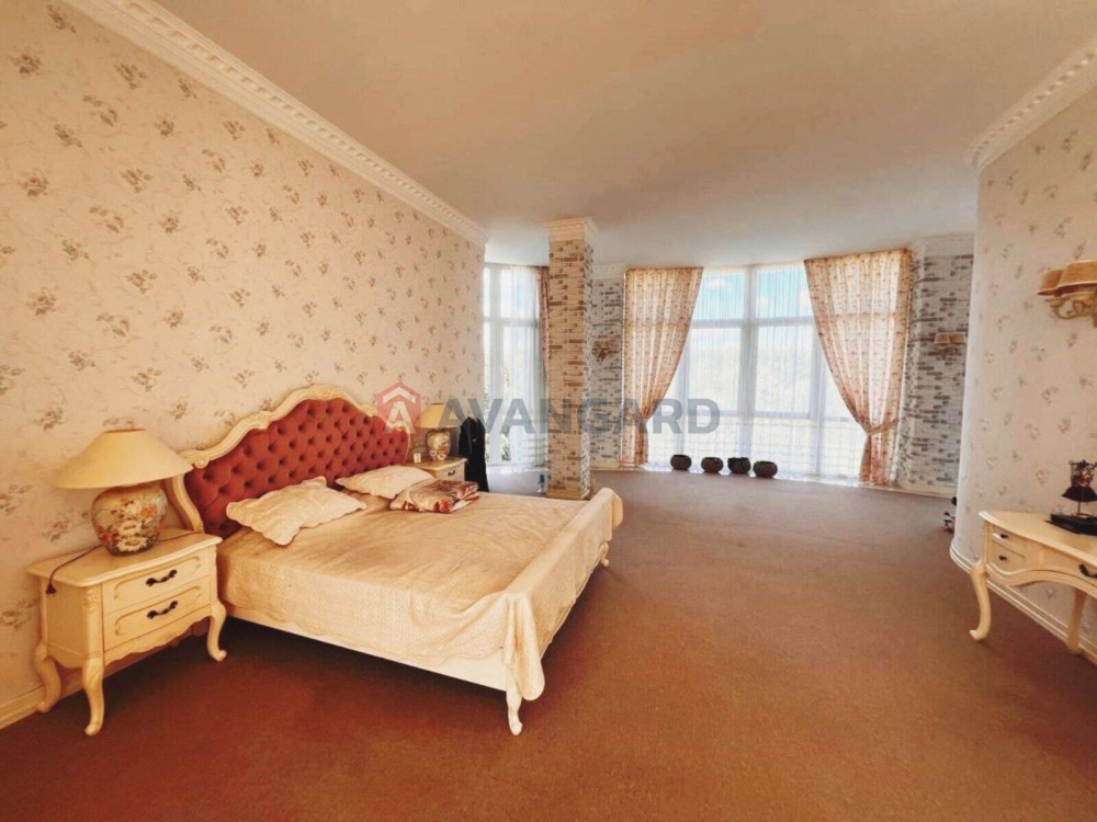 Звідси можна піднятися на 2 поверх, де розташована спальня 61,5 м², ванна кімната 15 м², гардеробна 24 м². Вид із вікон стає ще більш вражаючим!)