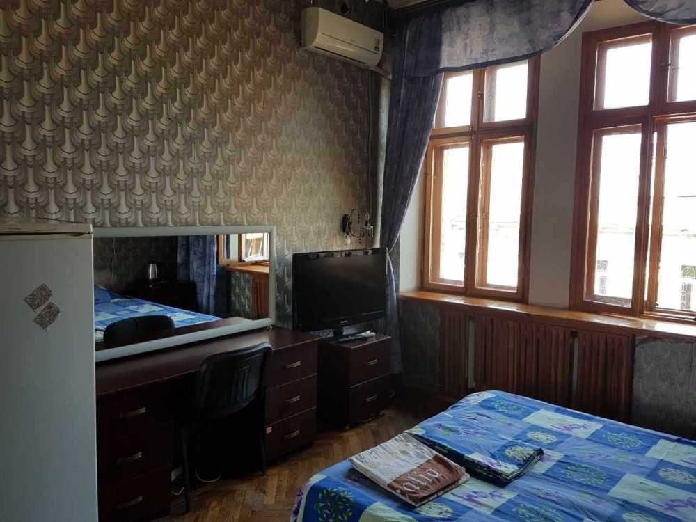 В комнате кондиционер,центральное отопление, холодильник, двуспальная кровать, зеркальный раздвижной шкаф.