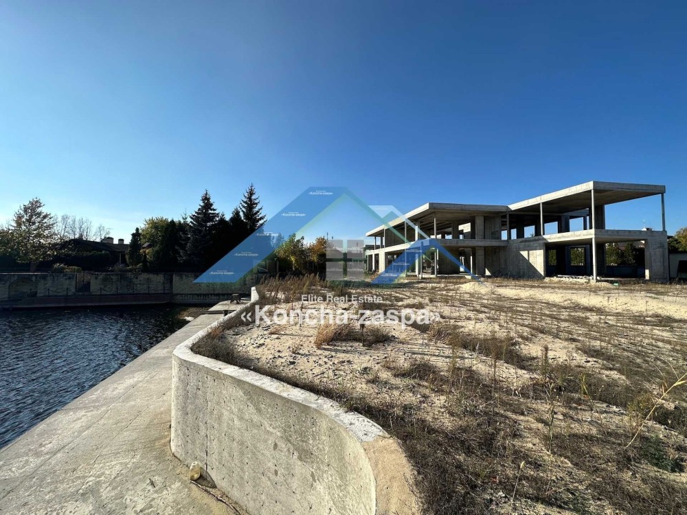 Большая Дамба, дом в современном стиле в закрытом коттеджом городке. Построена монолитно-каркасная коробки 500 м2, очень грамотно продуманна планировка. Закуплены алюминиевые окна (профиль). Оплачены коммуникации. Участок 24 сотки с выходом на Днепр. Сделано монолитное берегоукрепление.