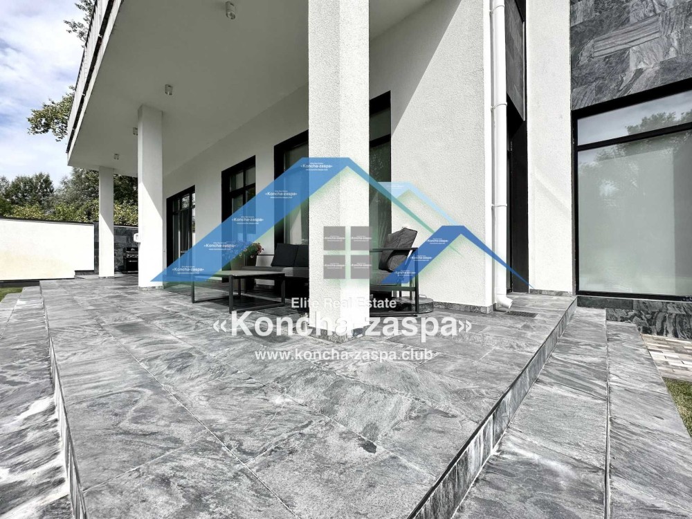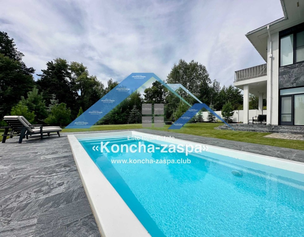 Дом построенный в 2022 году с современным дизайном, расположен в уникальном месте - Конча-Заспа, в закрытом коттеджном городке "Монтана".