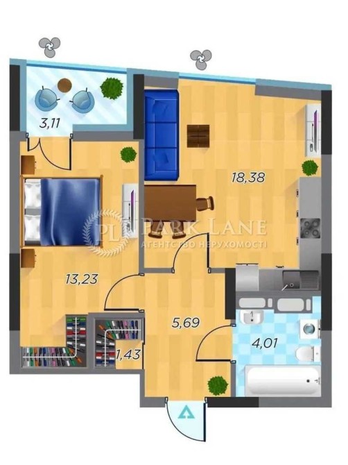 • Загальна площа 45 м2