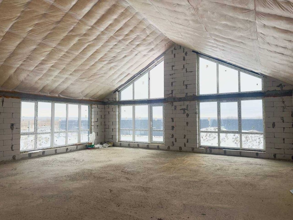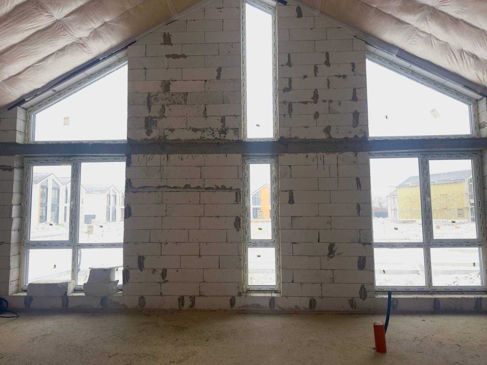 Котедж має стіни з газоблоку, утеплені мінеральною ватою, дах з метелочерепиці.