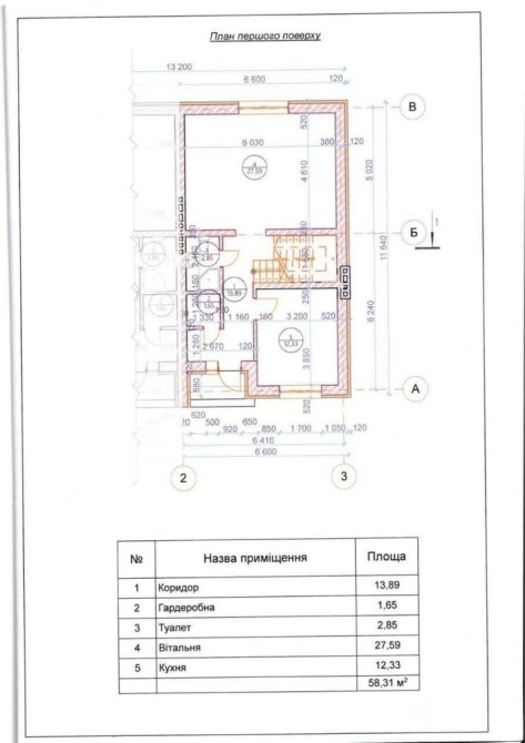 —1 поверх: кухня, вітальня, санвузол