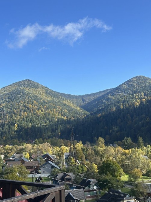 Поруч - ліс. Неподалік - річка. Звідси, як на долоні, видно усі принади Карпат.