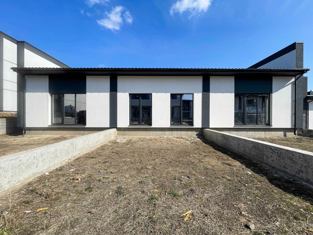 Продумане планування: простора кухня-вітальня з виходом у власний двір, дві окремі кімнати з великими панорамними вікнами, санвузол, зручна прихожа