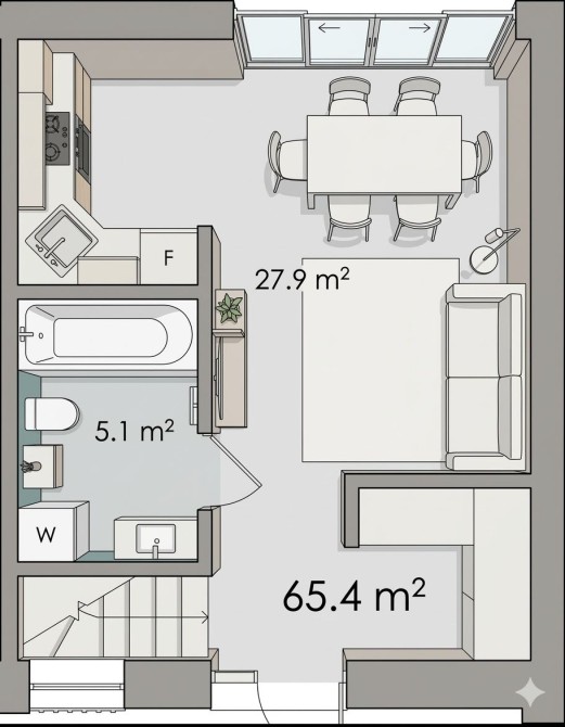 • Загальна площа 65 м2