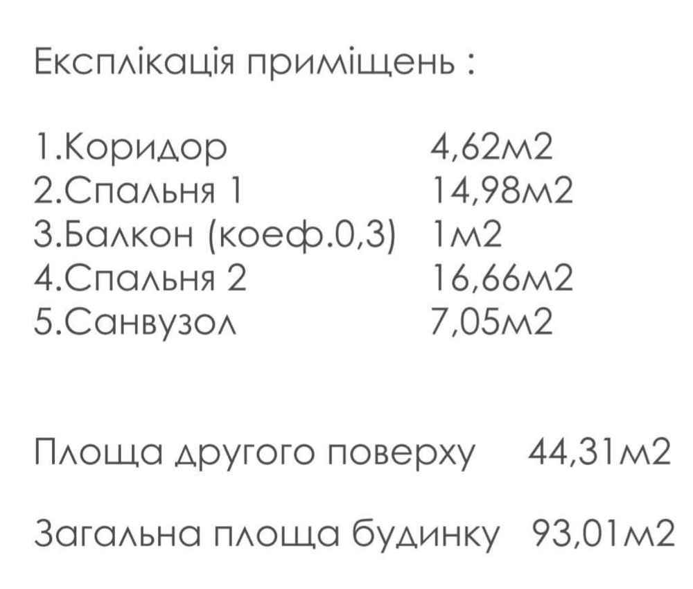 2 поверх — коридор, дві спальні, санвузол, балкон.