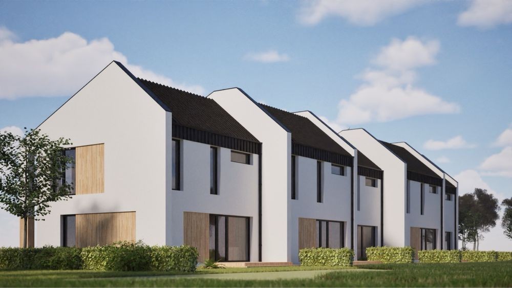 Котедж площею 91 м² із зручним двоповерховим плануванням — хороший варіант для сімейного проживання.