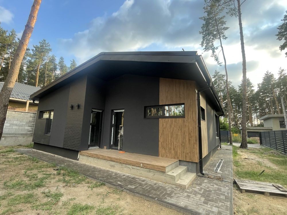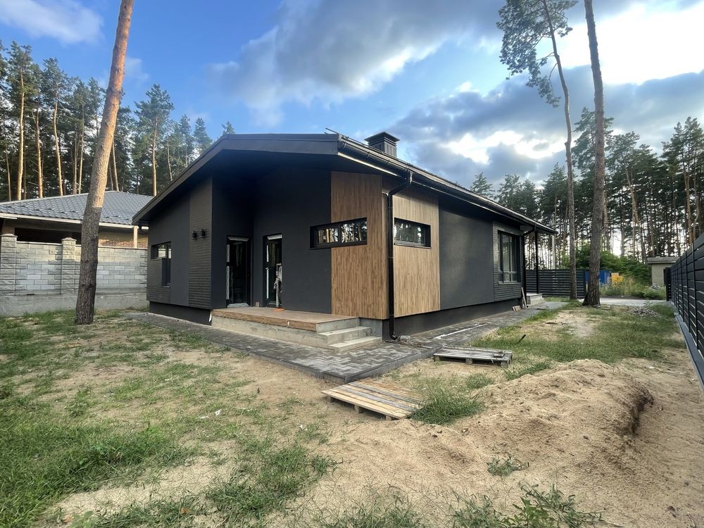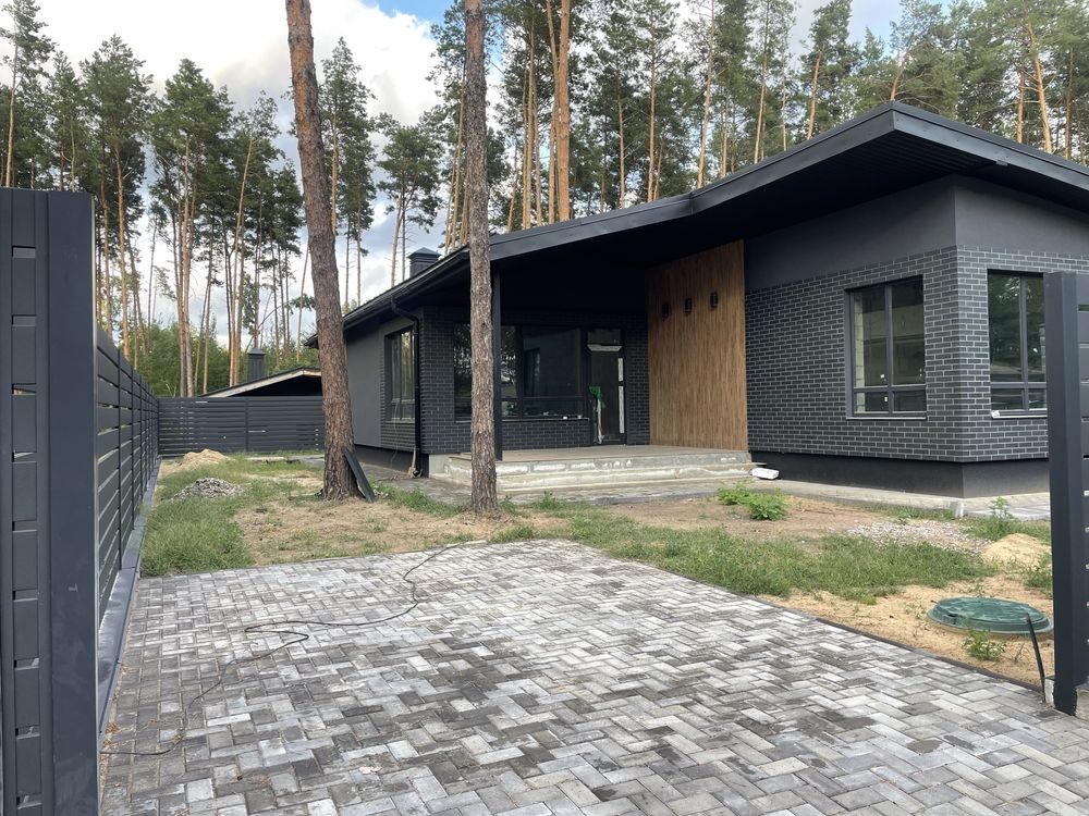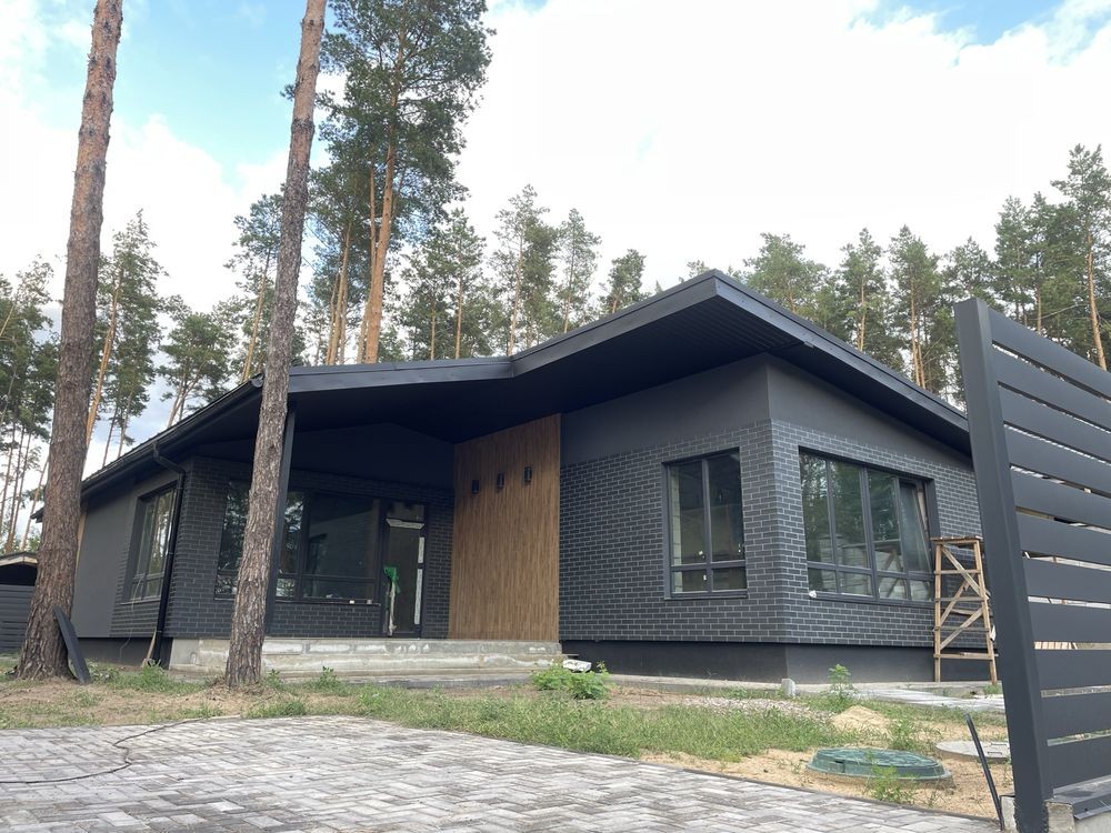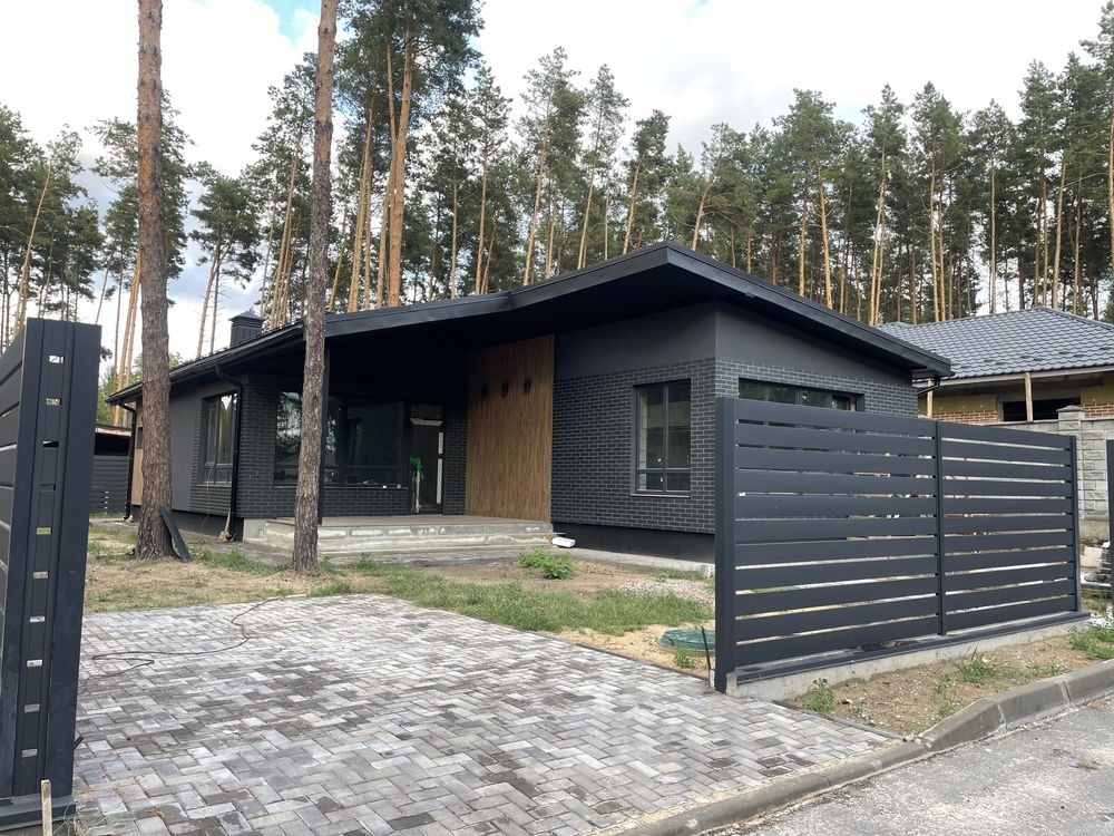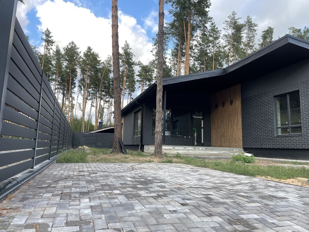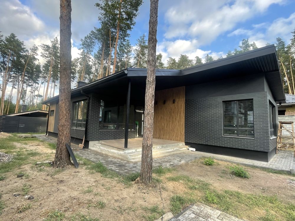 Продаж нового одноповерхового котеджу 140 м. кв. Будинок знаходиться в котеджному містечку « Підкова» , с . Гнідин , в оточенні соснового лісу. В містечку заведений газ, світло , артезіанська свердловина, асфальтований підʼїзд, містечко під охороною