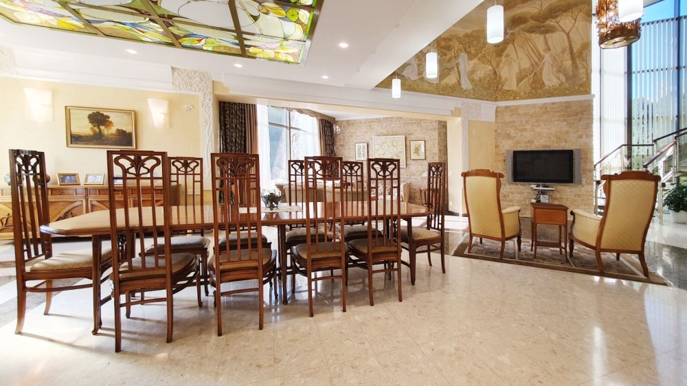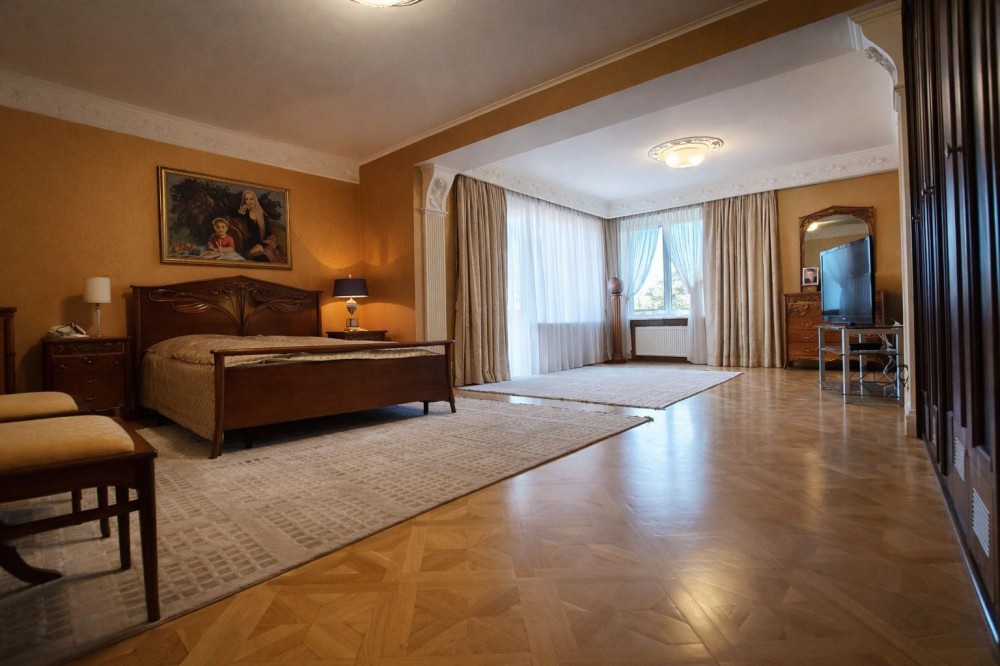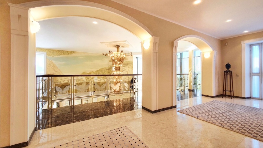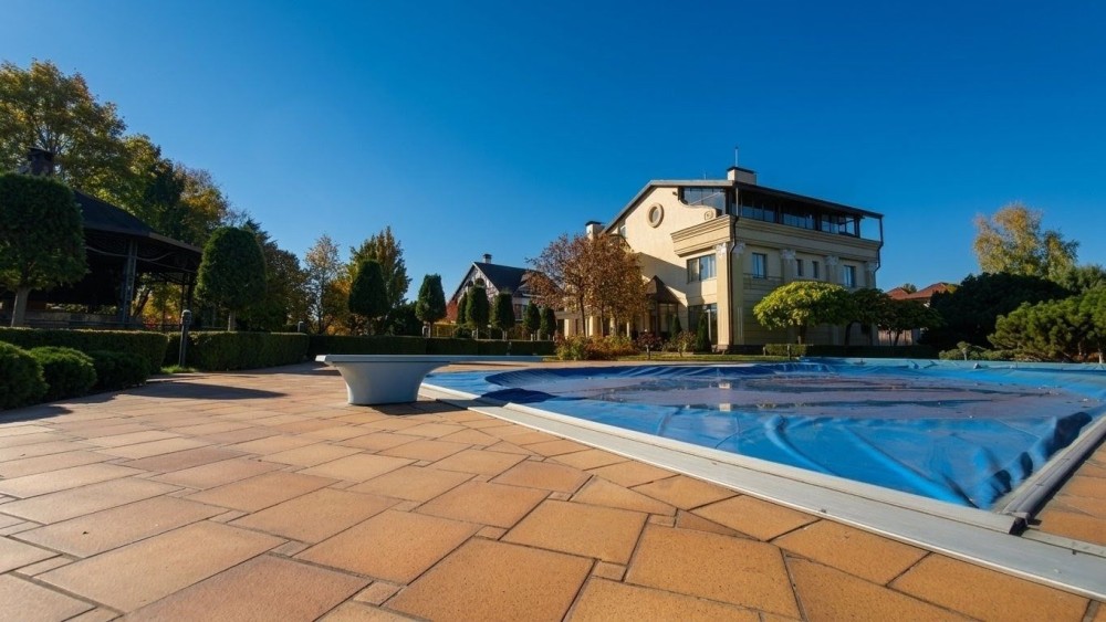 Площа 700 м2, ділянка 45 соток. 5 кімнат, більярдна, кабінет, вітальня з каміном, сауна з закритим басейном, веранда з багатозоним захистом від вітру, дощу, сонця, зона BBQ, відкритий басейн, 2 гаражі, елінг та спуск катера на воду, гостьовий будинок, дитячий майданчик. Закрита територія під цілодобовою охороною. Власна скважина, центральна каналізація, газовий котел, тепла підлога.