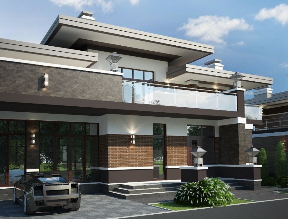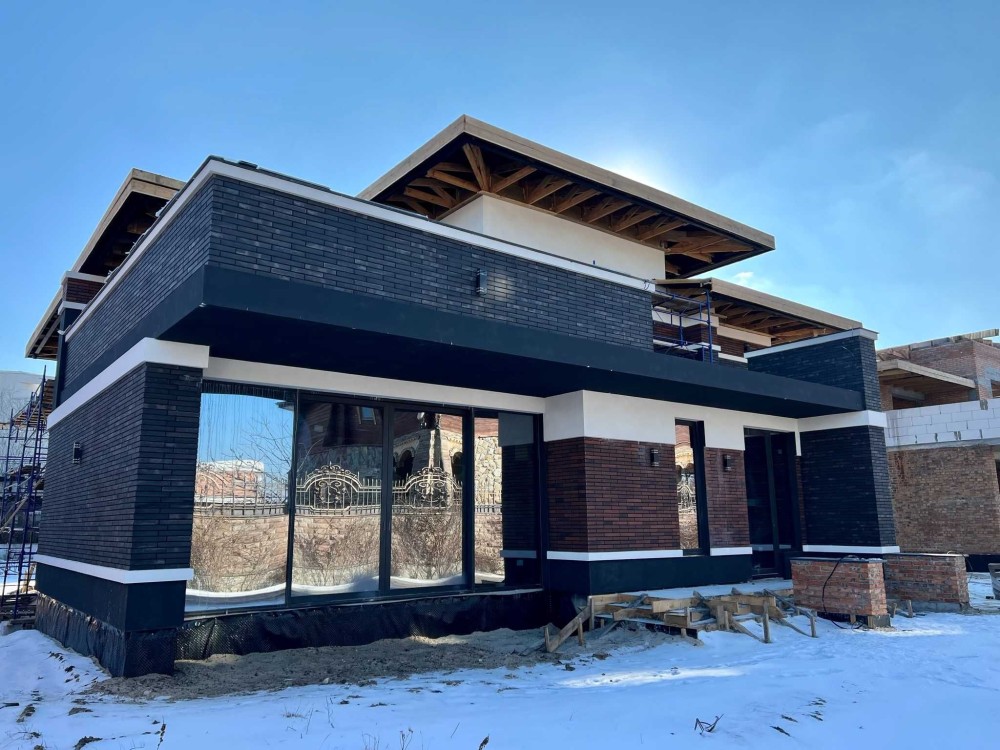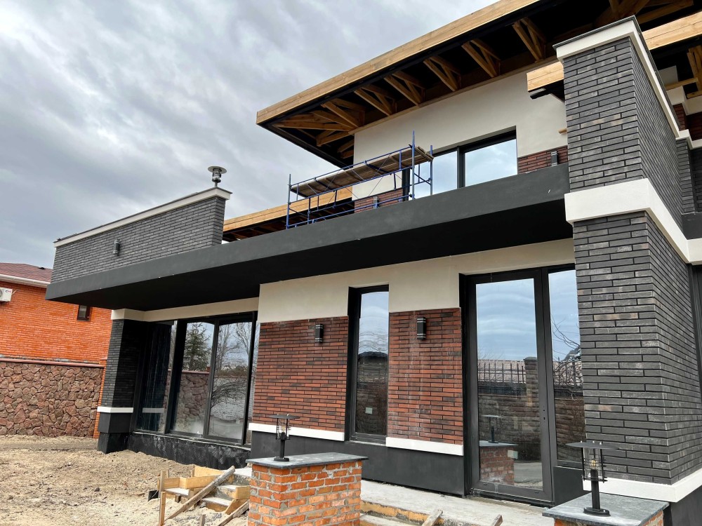 Дом 2-этажа 350 м2 с гаражом или спортзалом с панорамным окном 6000х3000 с раздвижной системой Reynaers Aluminium