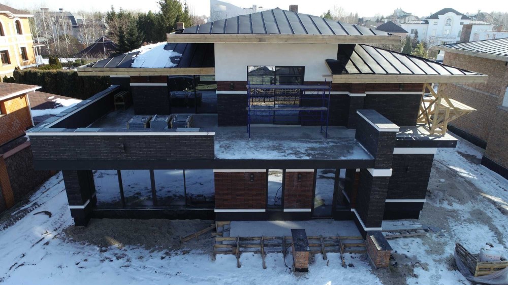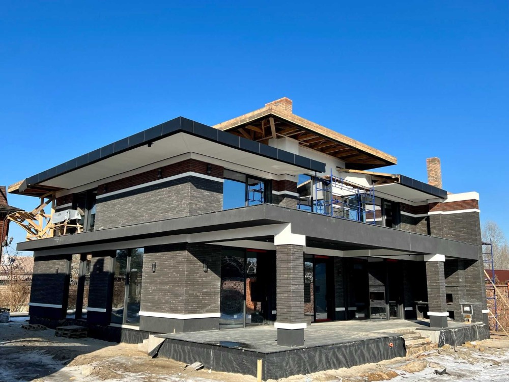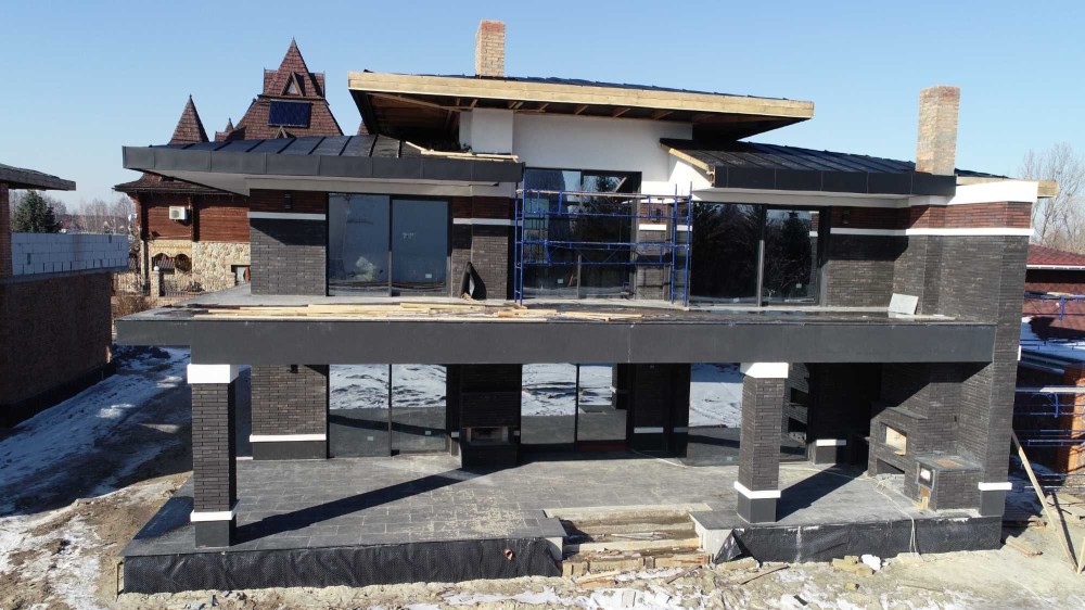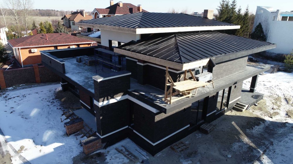 Фальцевая алюминиевая кровля со скрытым жёлобом, Алюминий PREFAА Австрия, гидроизоляционная мембрана Dorken, утепление 250мм.