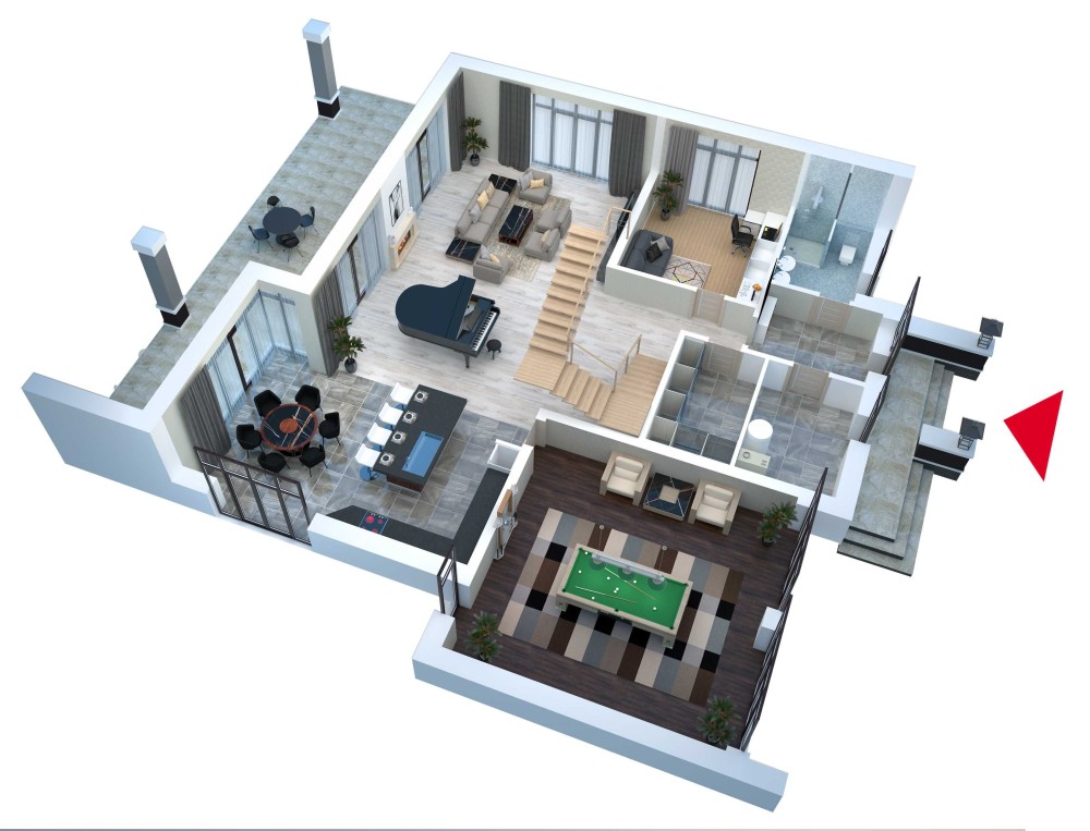 Большие террасы на первом и втором этаже (около 200 м2)
