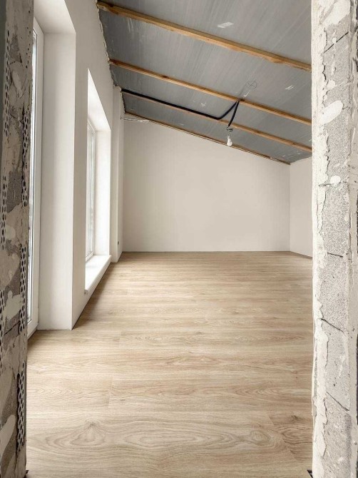 Планування: три окремі спальні, два санвузли, простора кухня-вітальня. Світлий, сучасний ремонт у нейтральних тонах. Фото надані на стадії завершення ремонту — здача будинку орієнтовно через місяць.