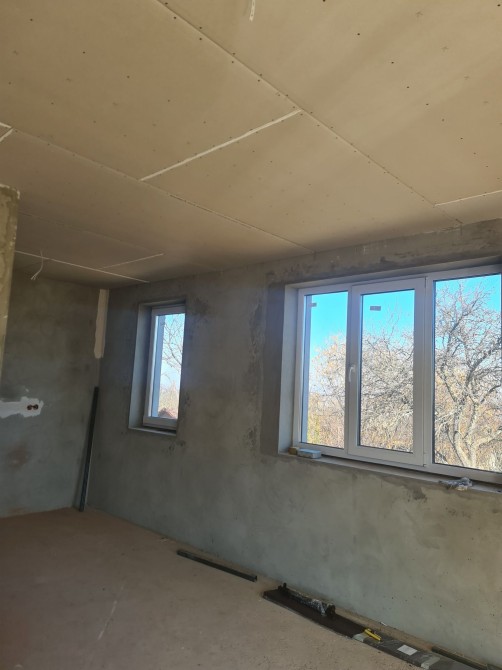 Перекриття монолітно-каркасне, дах металочерепиця. Зроблена розводка по електриці, вмонтовані труби для теплої підлоги, на стелі змонтований гіпсокартон, опалення електричне та твердопаливний котел. 6 соток землі, земля у власності. Чотири кімнати, два санвузла, два балкони. Встановлений паркан та електричні ворота.