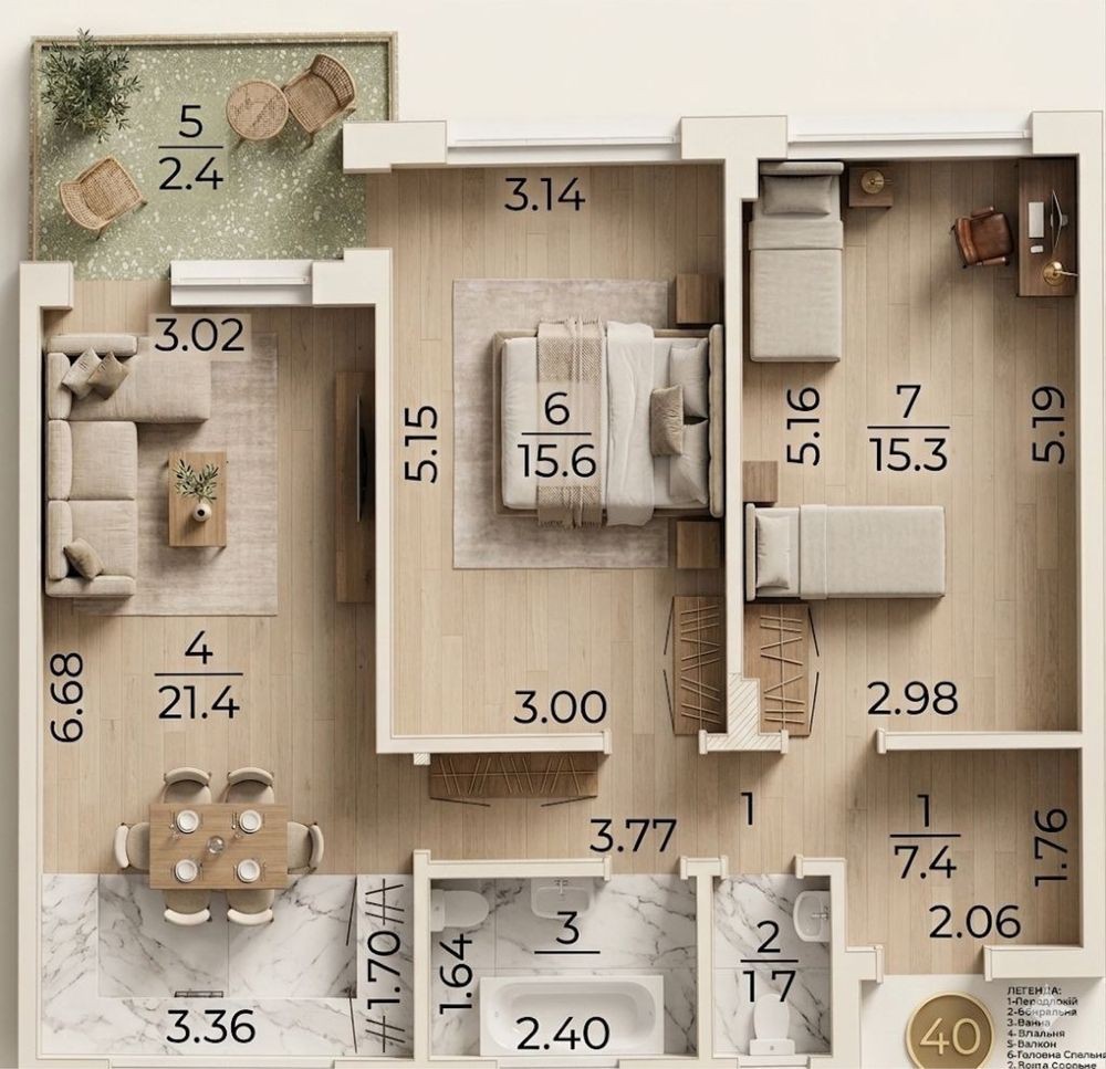 • Загальна площа 68 м2