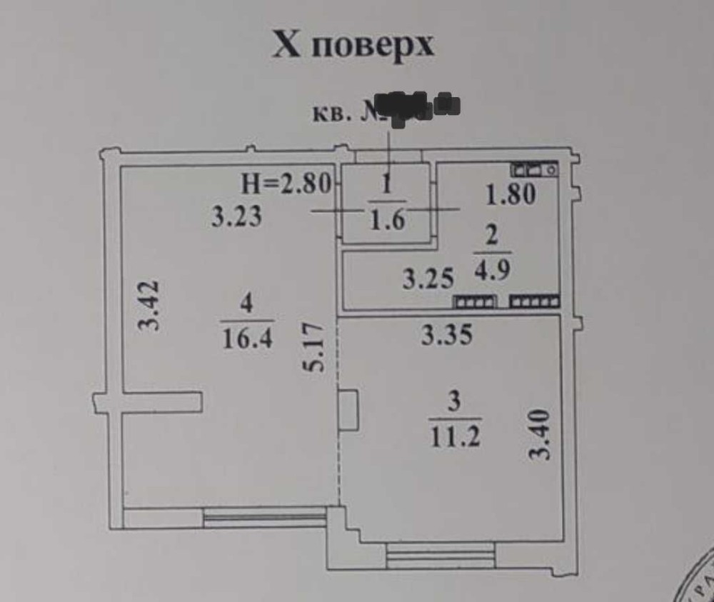 • Загальна площа 34 м2