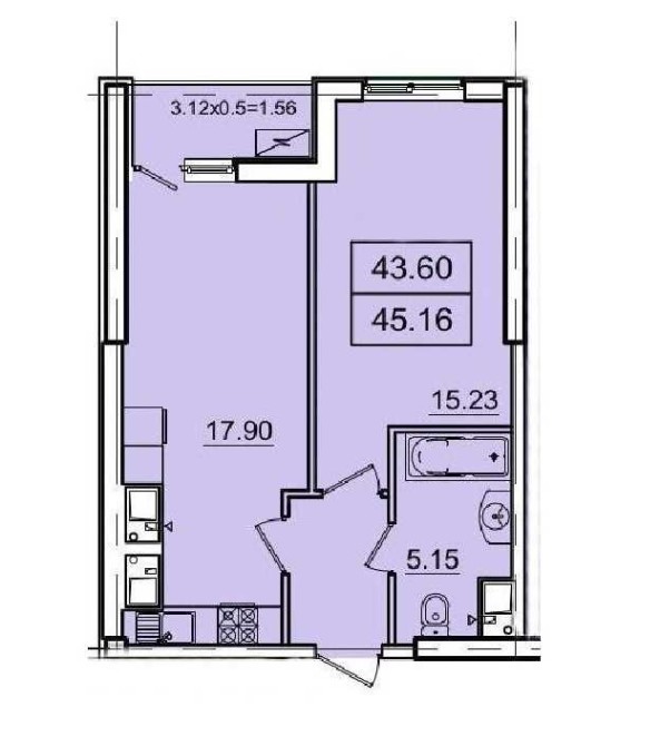 • Загальна площа 45 м2