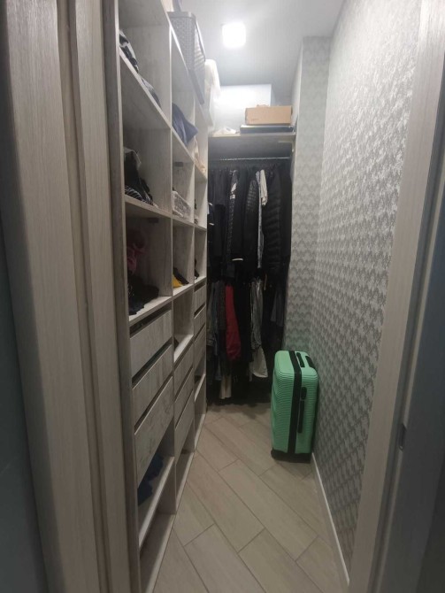 Гардеробная комната оборудована полками и рейлами для хранения вещей, вместительная и удобная. Так же есть балкон. Квартира находится в красивом ЖК " Парк Фонтанов".