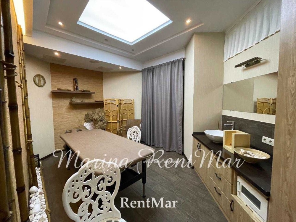 Ресепшн, отдельная кухня, раздевалка для сотрудников, кабинет директора, 2 подсобных помещения: одно для уборочного инвентаря, и второе, в котором находится большой бак для запаса воды на 500 литров и 2 бойлера по 100 литров. Большой зал с креслами, две мойки. Массажный кабинет, кабинет косметолога, кабинет для маникюра и педикюра. Парикмахерский зал на 5 кресел, 2 мойки для головы, рабочая зона для парикмахеров, закрытая от клиентов, оснащённая индивидуальным умывальником. 2 санузла: для клиентов и отдельно для персонала (с душевой). Продается со всем оборудованием и мебелью!