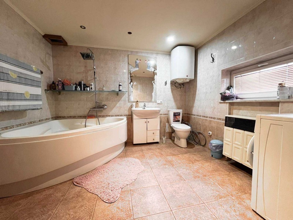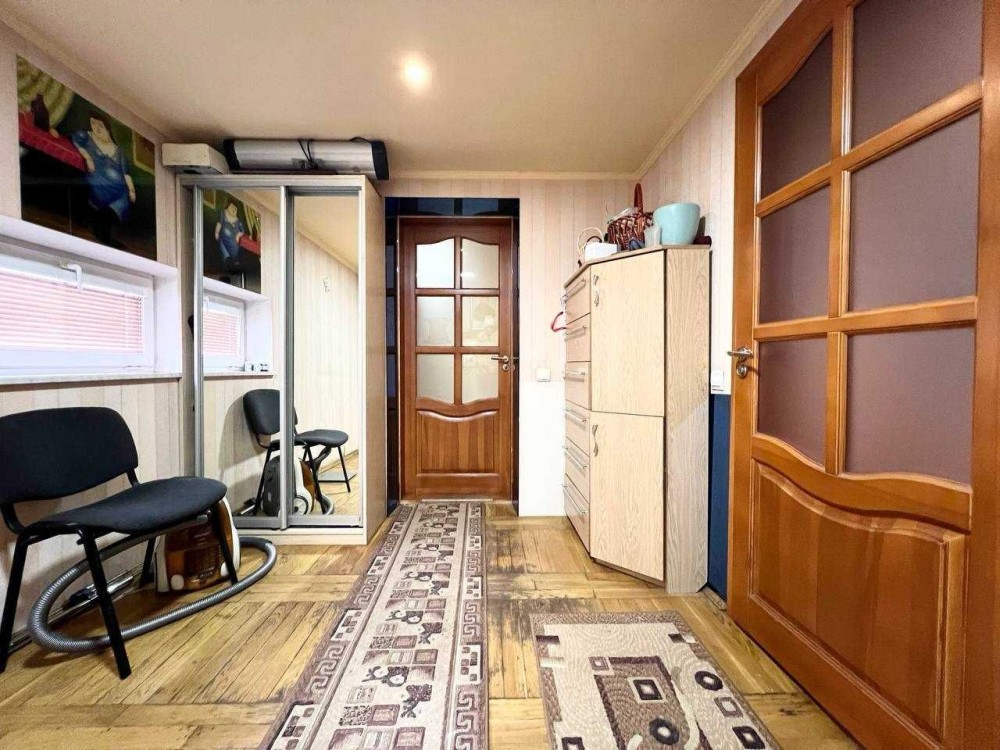 Продається цегляний утеплений будинок у центрі села Трушки. Будинок з якісним косметичним ремонтом, перекриття між поверхами — залізобетон. Є гараж із виходом у просторий підвал, а з лоджії — вихід на горище (холодне, на всю площу). У будинку два санвузли: на першому поверсі з душем, на другому — з ванною. Встановлений кондиціонер, супутникове телебачення, оптоволоконний інтернет. Вода — зі свердловини 25 м, каналізація — септик. Опалення: двоконтурний газовий котел + твердопаливний у окремій котельні. Підключено 30 кВт (3 фази). Є діюча сонячна електростанція на 10 кВт (зелений тариф), техумови на 30 кВт, інвертор, безперебійник, акумулятори на 10 кВт⋅год. На території — окремий господарський блок: літня кухня з підведеними водою та газом, сауна з басейном і кімнатою відпочинку, дровник, сарай, кладова для інвентарю. Також є затишна бесідка, вольєр для тварин. Земельна ділянка 15 соток, огороджена та доглянута. До зупинок і магазинів — 5 хвилин пішки. Ціна — 150 000 $, торг доречний. Телефонуйте — перегляд у зручний для вас час .
