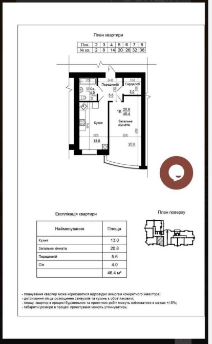 • Загальна площа 46.4 м2