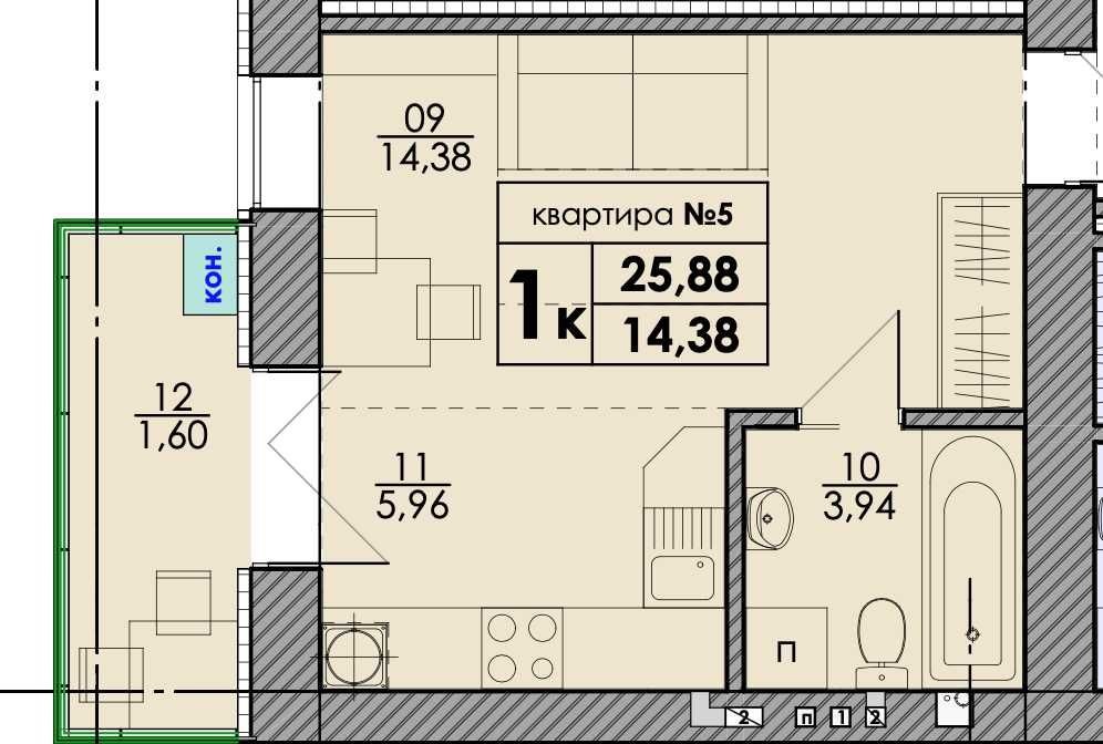 • Загальна площа 25.88 м2