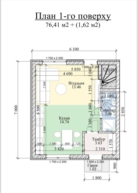• Загальна площа 76 м2