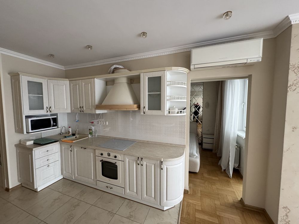 Оренда великої 1-кімнатної квартири в Оболонському районі, Володимира Івасюка вул 2д, 19/23 поверх, квартира з гарним ремонтом, побутова техніка, меблі(нові), з вікон відкривається чудовий краєвид на Дніпро і центр міста, є окремий кабінет, квартира дуже тепла, навкруги хороша інфраструктура, поряд парк Наталка.