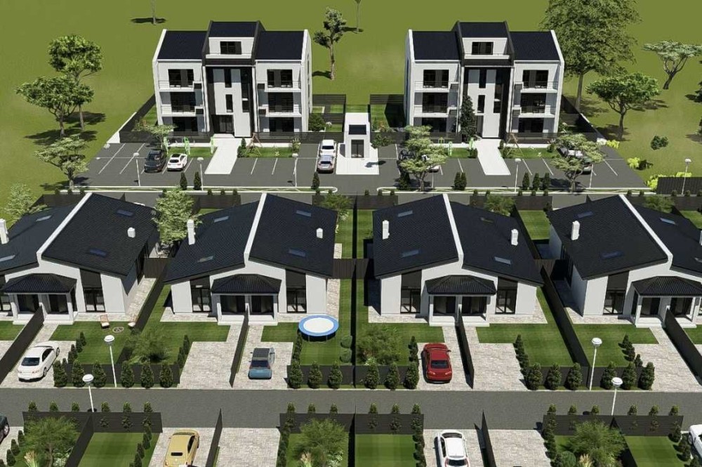 Котеджне містечко B.B. Park пропонує на вибір одно- та двоповерхові квадробудинки (концепція передбачає розподіл одного будинку на чотири частини, кожна з власним подвір’ям і місцем для паркування). Кожен об’єкт має автономний септик та свердловину.