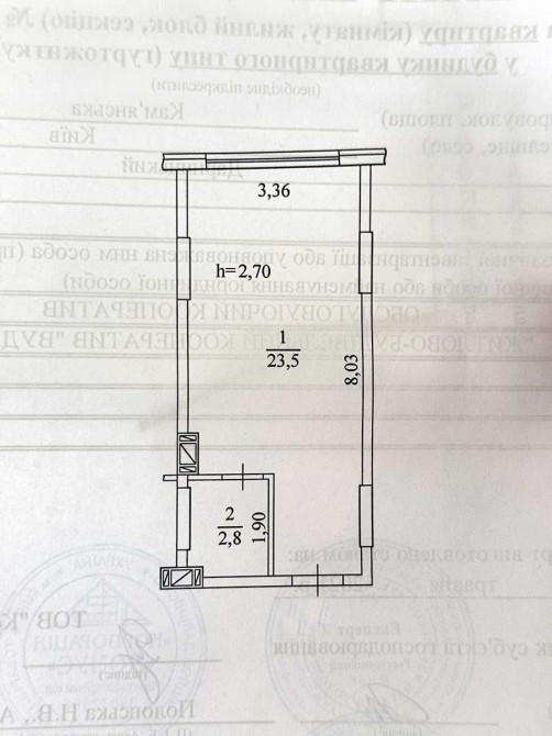 Помешкання має зручне планування, простору кімнату з виділеною кухонною зоною та суміжний санвузол. Виконано якісний ремонт під внутрішню обробку: стіни поштукатурені, розведена електропроводка, зроблені виводи для сантехніки, у кухонній зоні встановлено робочий фартух. Підлога викладена плиткою. Встановлено лічильники на електроенергію та воду, розведена система для кондиціонера, передбачений спеціальний кошик під нього. Опалення індивідуальне.