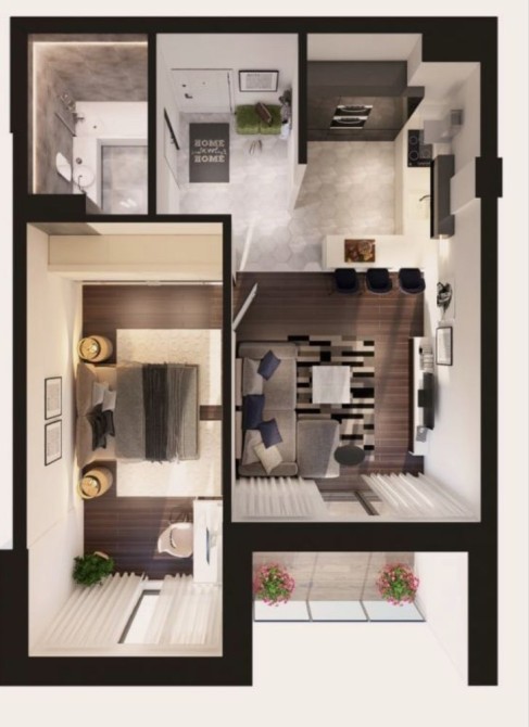 Двоповерхова квартира в новобудові. 16-17 поверхи. Легко ділиться на 2 однакові просторі однокімнатні квартири. Чудовий проект для інвестиційної нерухомості.