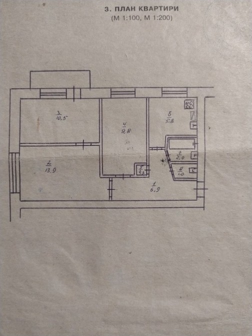 • Площа кухні 5.8 м2