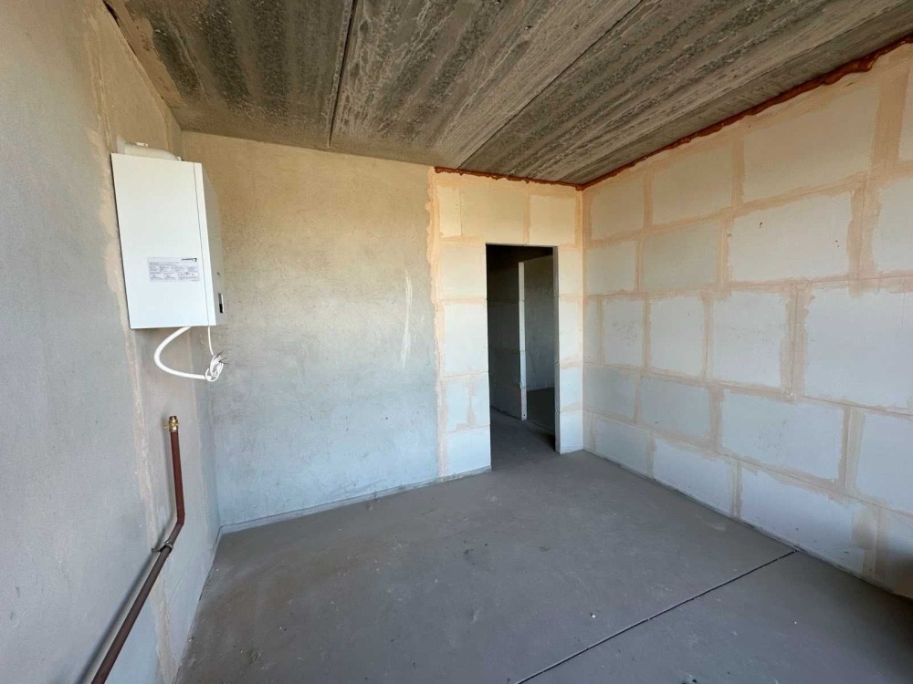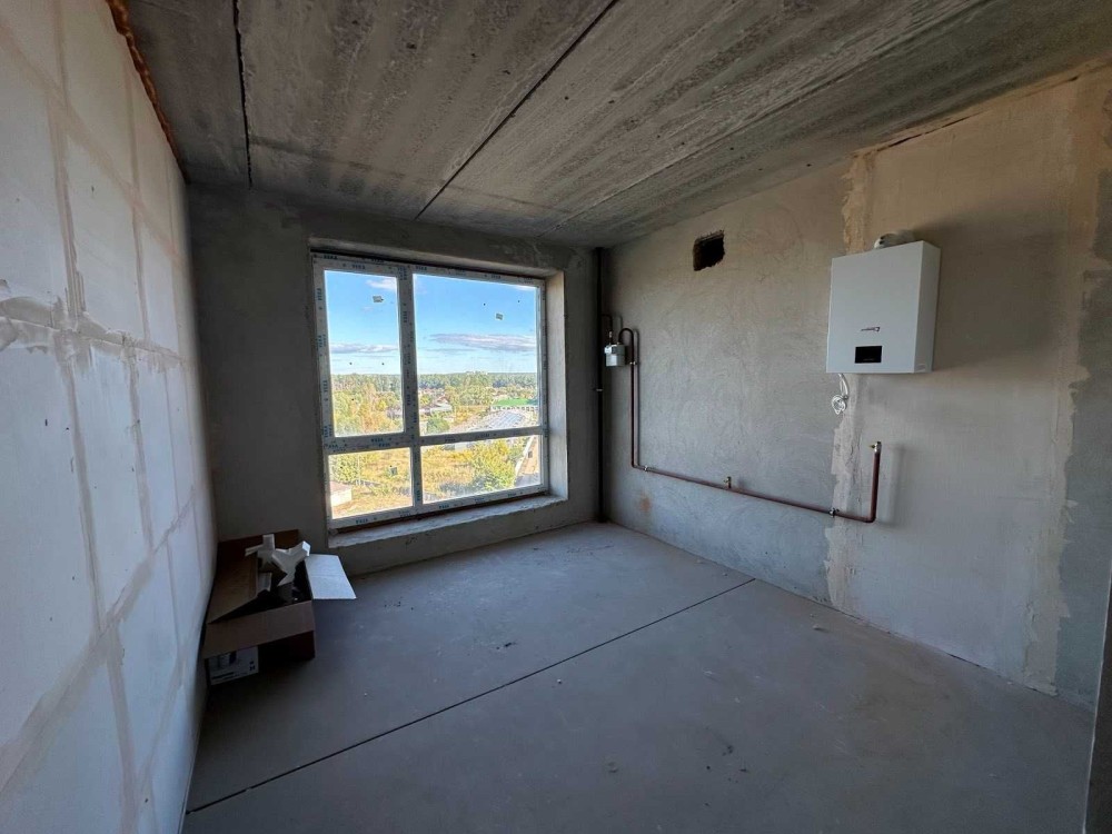В квартирі вже зроблена штукатурка стін, стяжка підлоги, встановлений газовий котел.