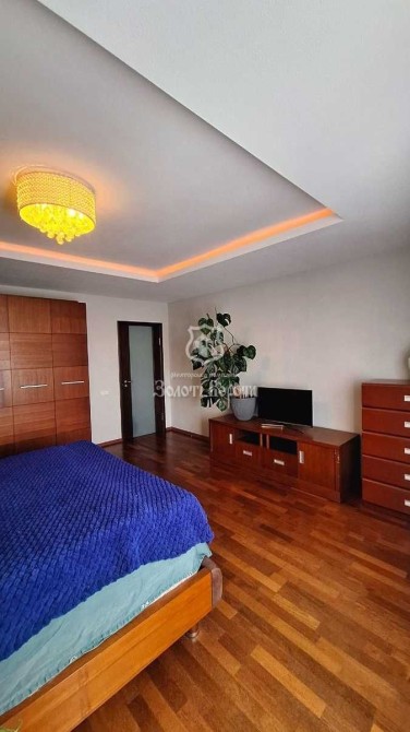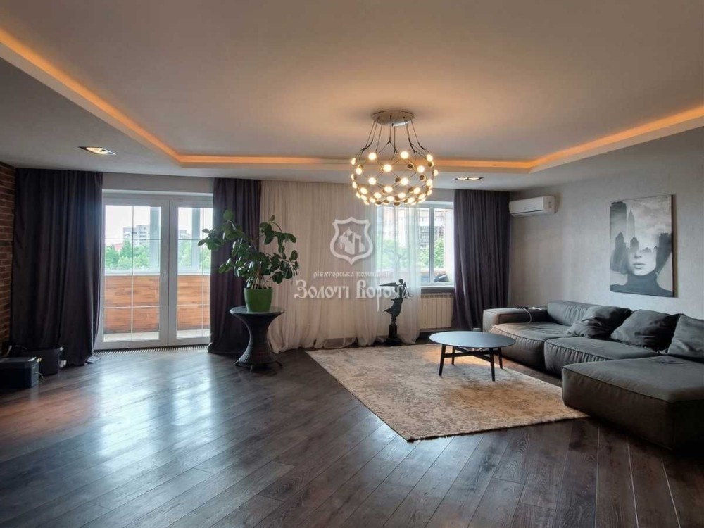 Планування квартири ідеально підходить для великої родини: надзвичайно простора вітальня з дизайнерською люстрою, затишна кухня зі вбудованою технікою, окрема гардеробна кімната площею 6 м² та велика засклена лоджія.