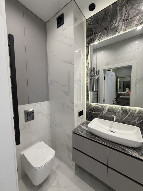Якісний ремонт: декоративна штукатурка на стінах, теплі підлоги, стеля з тіньовим профілем.