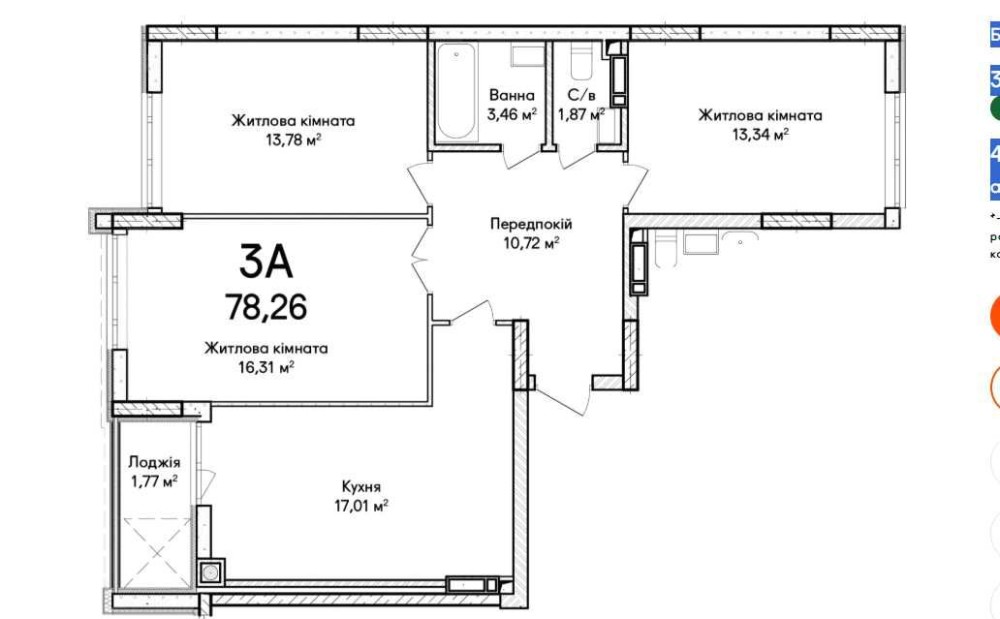 • Загальна площа 80.2 м2