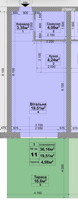 • Загальна площа 36 м2