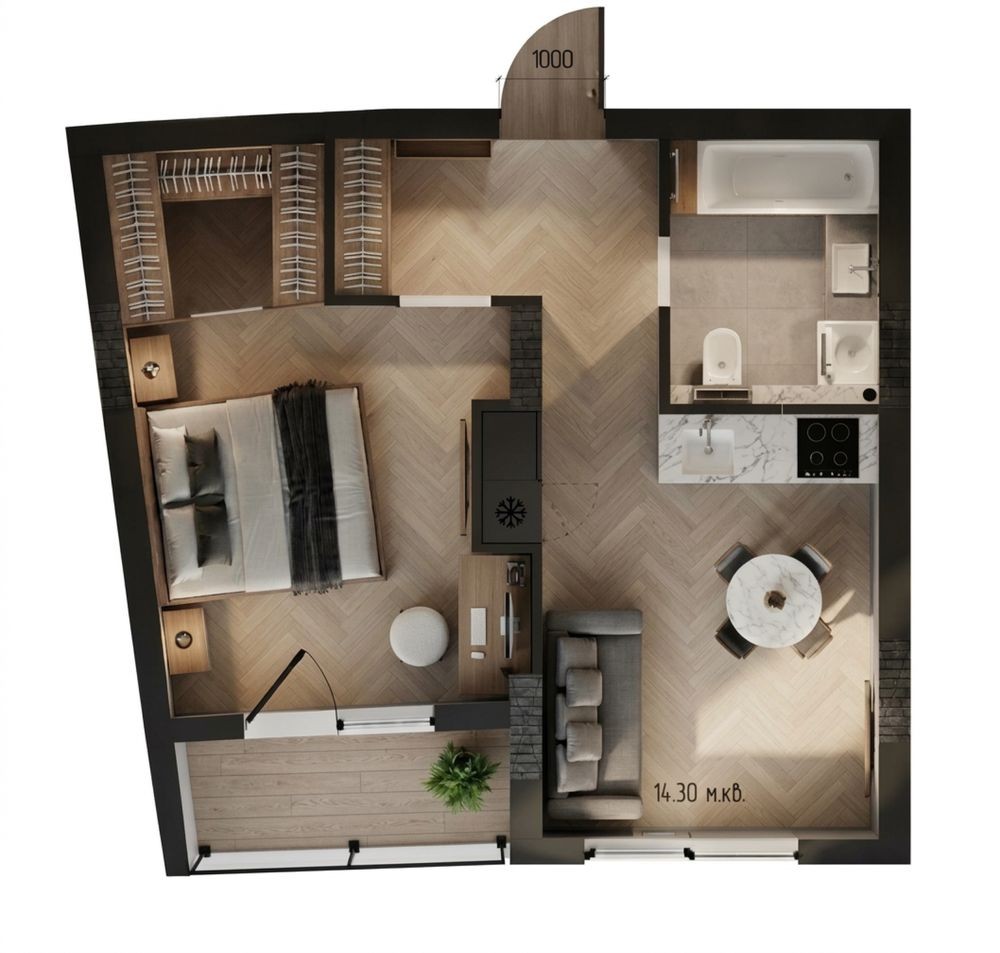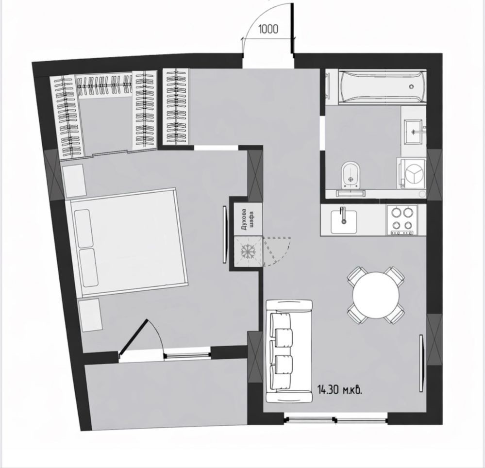 • Площа кухні 14.3 м2