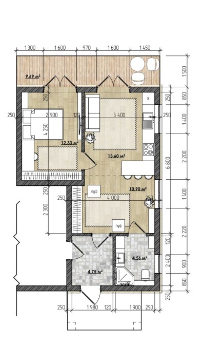 • Загальна площа 44 м2