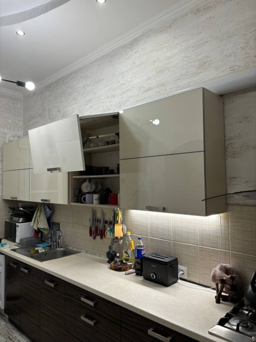 Всі меблі робились під замовлення, газова плита, вбудована посудомиюча машина. Квартира простора, світла та зручна, сусідів не чути як в Кадорі, і вас ніхто не почує.