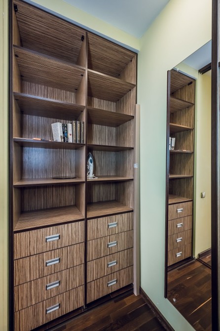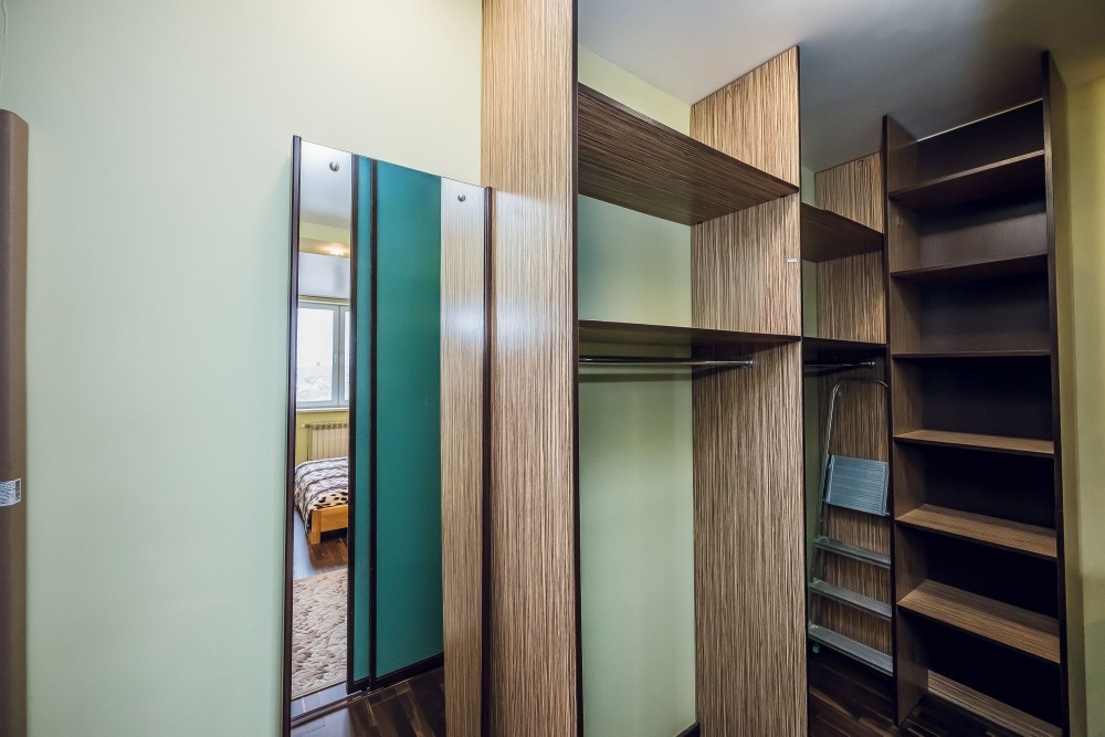 — большая гардеробная, что избавляет от лишних шкафов