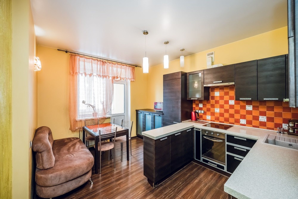 — просторная кухня 14 м², где комфортно собираться всей семьёй