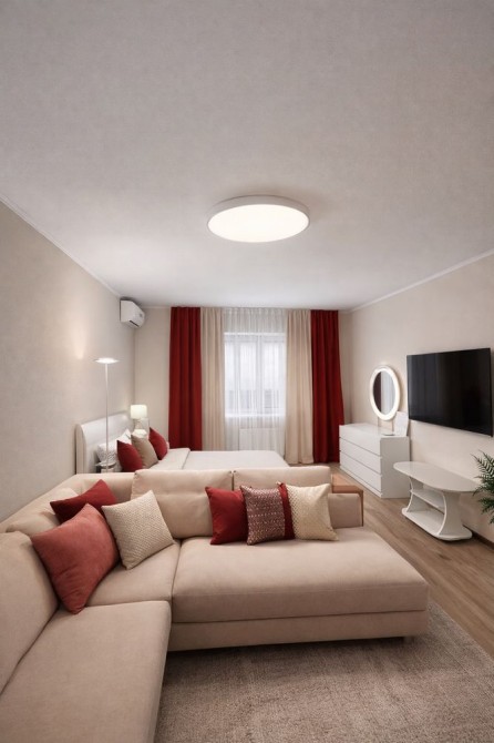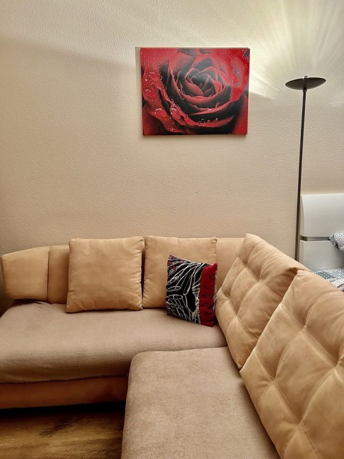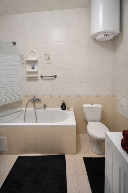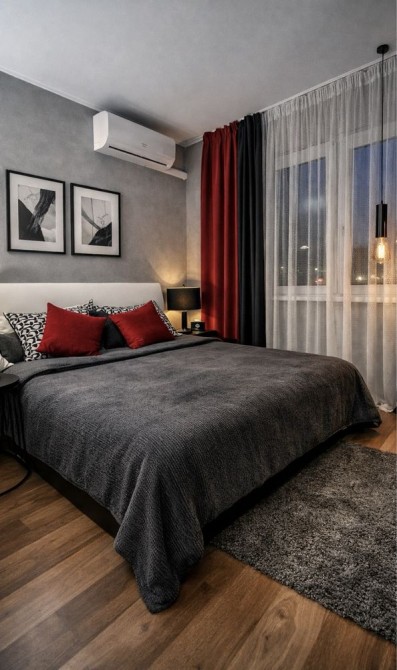 У квартирі двоспальне ліжко, два великі розкладні дивани, побутова техніка (пральна машина, холодильник, мікрохвильова піч, електроплита, духовка, електрочайник, фен, праска, бойлер), 2 кондиціонери,