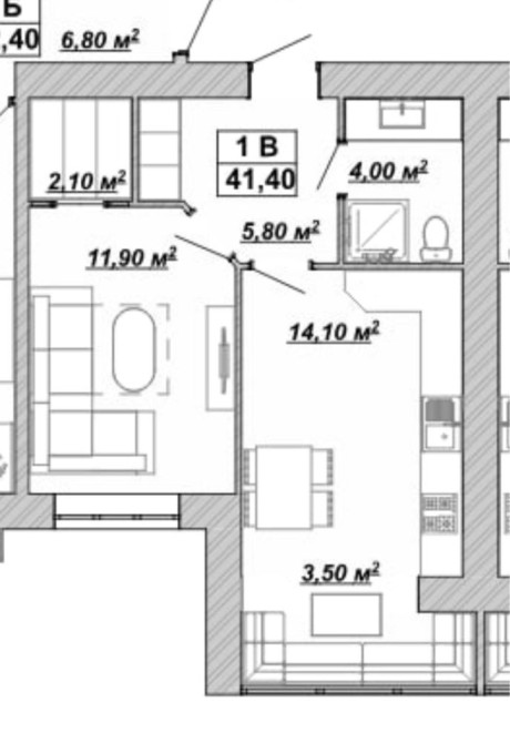 • Загальна площа 42.4 м2