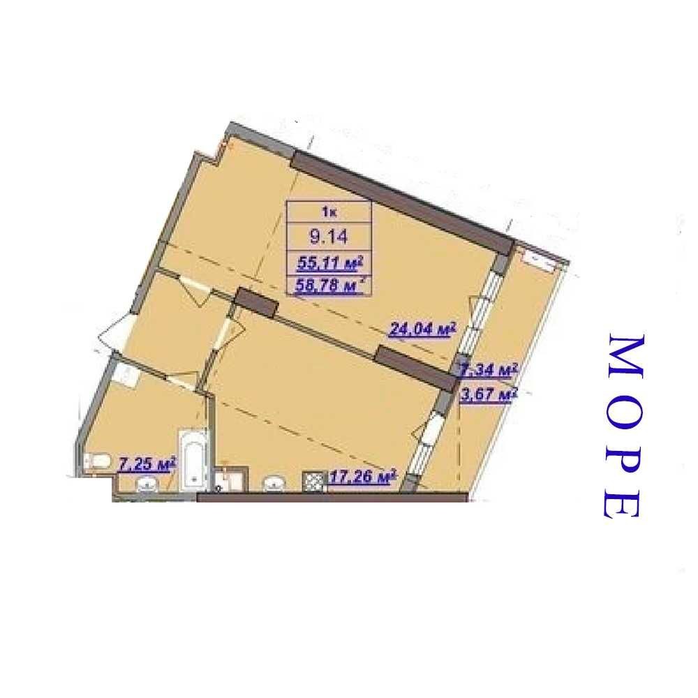 У продажу квартира у зданому ЖК на першій лінії моря.